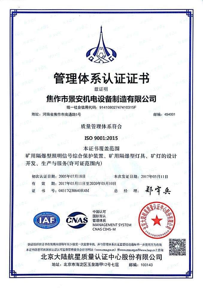 焦作市景安機電設備制造有限公司(原焦作市無線電一廠),是國家重點生產礦用防爆電子電器產品的專業(yè)企業(yè),全國煤炭行業(yè)機電產品定點生產單位,中國電器工業(yè)協會防爆電氣分會理事,市級礦用隔爆型工程技術中心,公司占地30000平方米,廠房10000平方米,ISO9001:2008質量管理體系和A級計量認證企業(yè)。